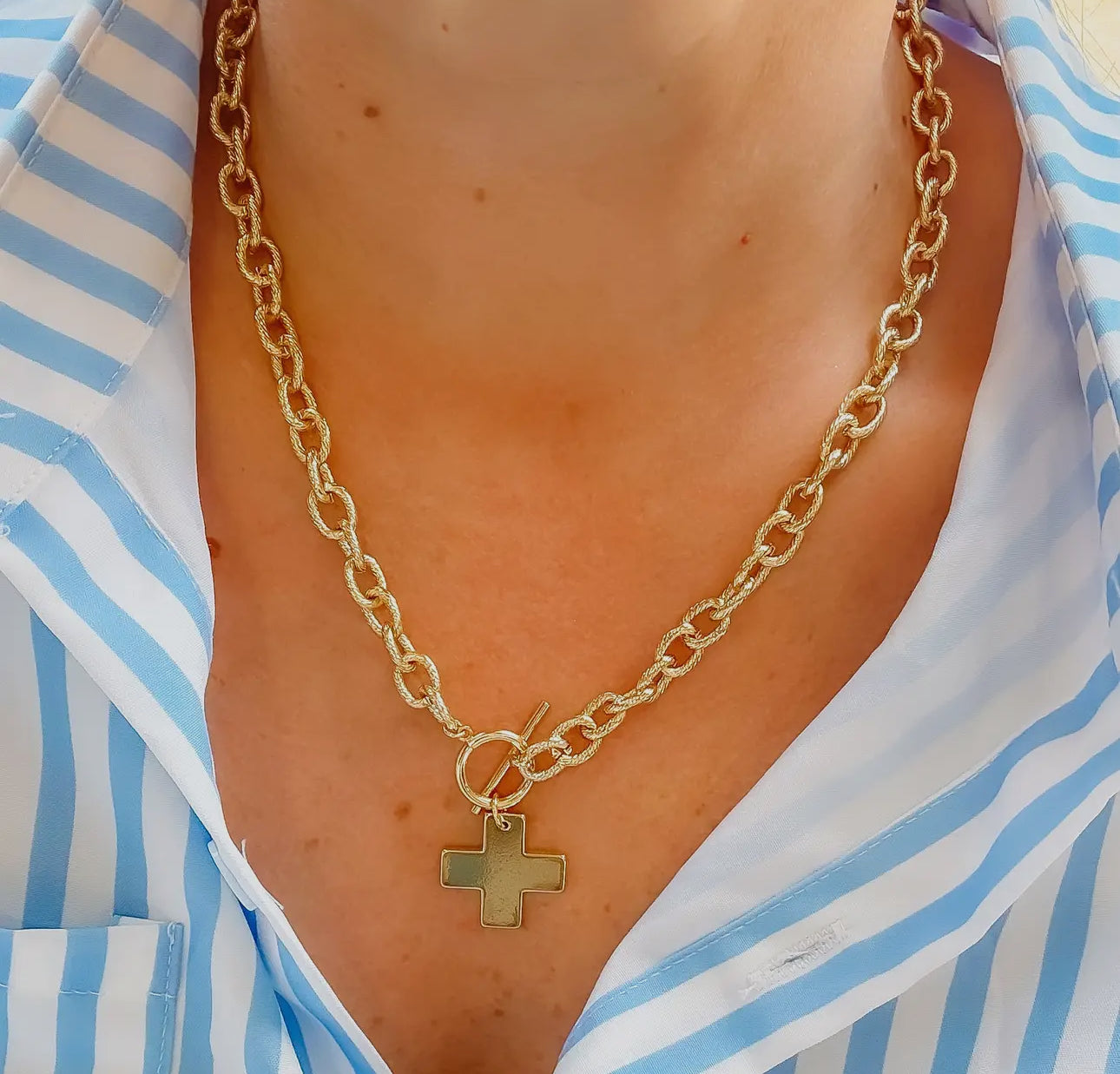 Add a touch of sparkle and spirit with the All You Need Is Faith gold cross necklace. This charming piece blends timeless faith with a playful shine, perfect for brightening any outfit or mood. Wear it as a daily reminder that a little faith goes a long way!