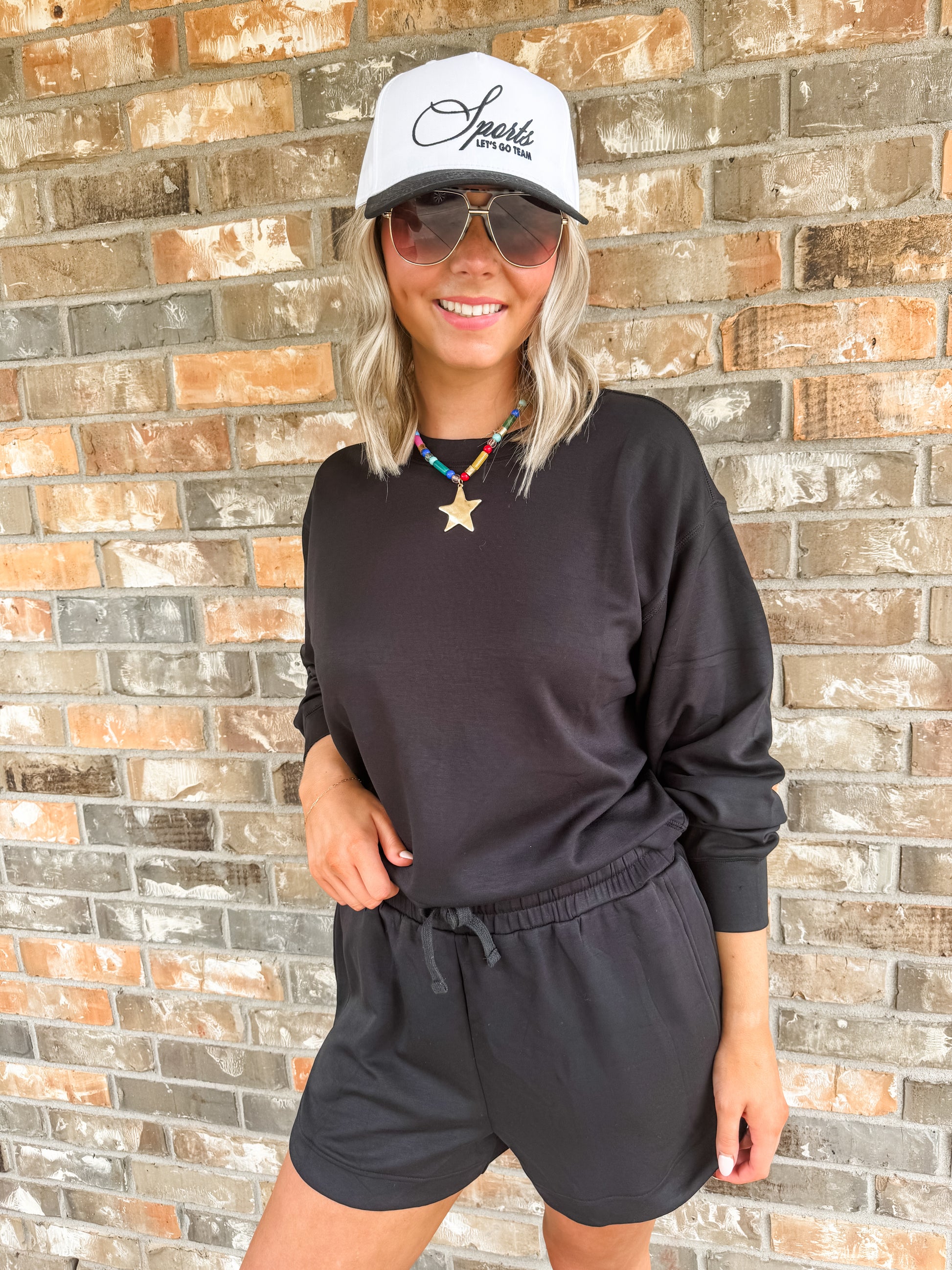 Experience unmatched comfort with the Becky Black Knit Top, crafted from super soft fabric that feels gentle against your skin. Its sleek black design offers versatile style, perfect for layering or wearing on its own. Elevate your wardrobe with this cozy sweatshirt that combines warmth and effortless chic for everyday wear.