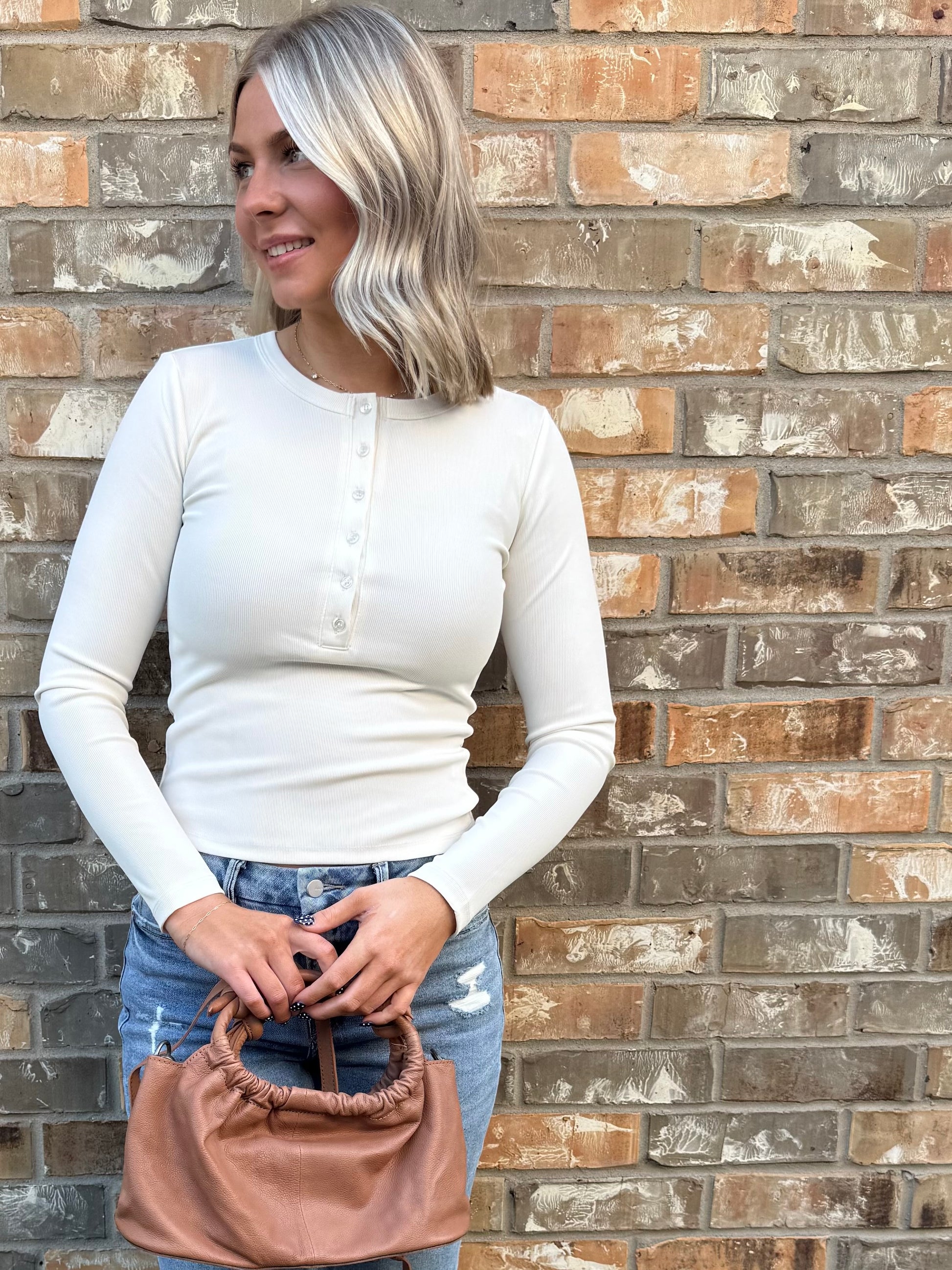 This cream ribbed henley top offers a refined blend of comfort and style, crafted from a soft, breathable knit fabric. Featuring long sleeves and a classic henley neckline with button detail, it provides versatile layering options while maintaining a tailored fit. Ideal for elevating casual looks with understated texture and warmth.