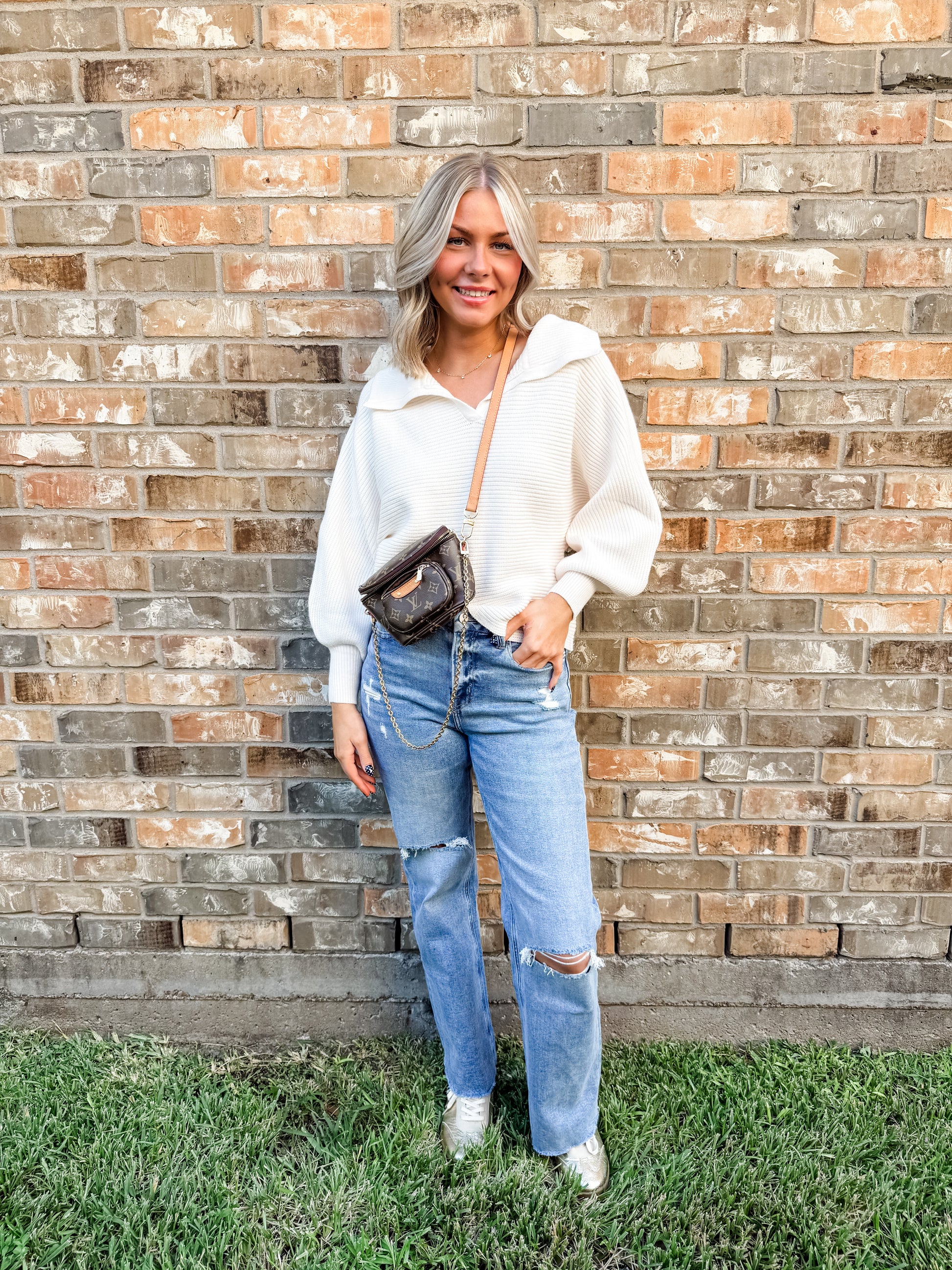 Cozy up in this dreamy white knitted sweater featuring a big, snuggly collar and wide dolman sleeves that bring extra comfort and style. Perfect for chilly days when you want to feel wrapped in warmth with a playful, relaxed vibe. Easy to pair with your favorite jeans or skirts for an effortlessly chic look!