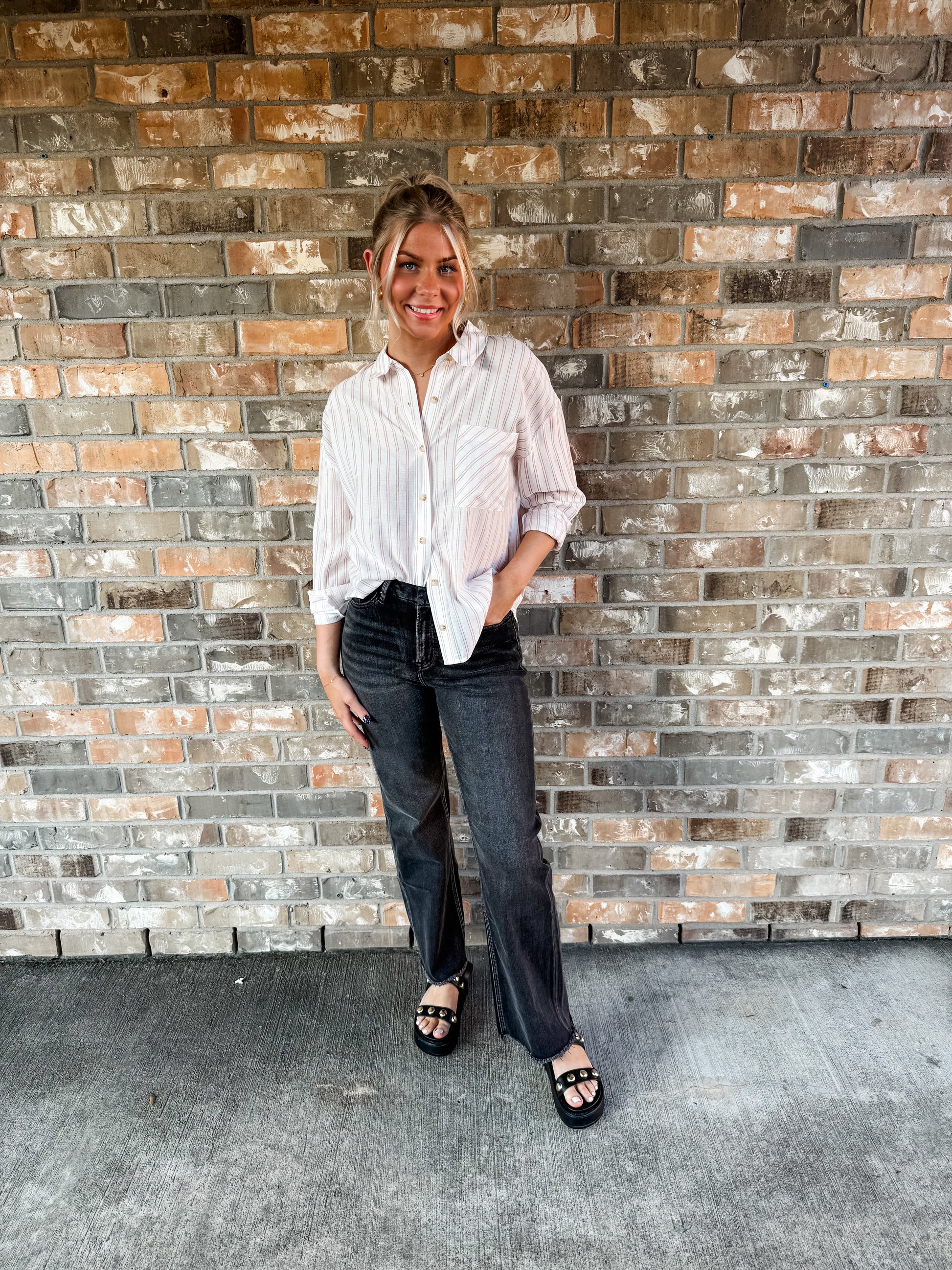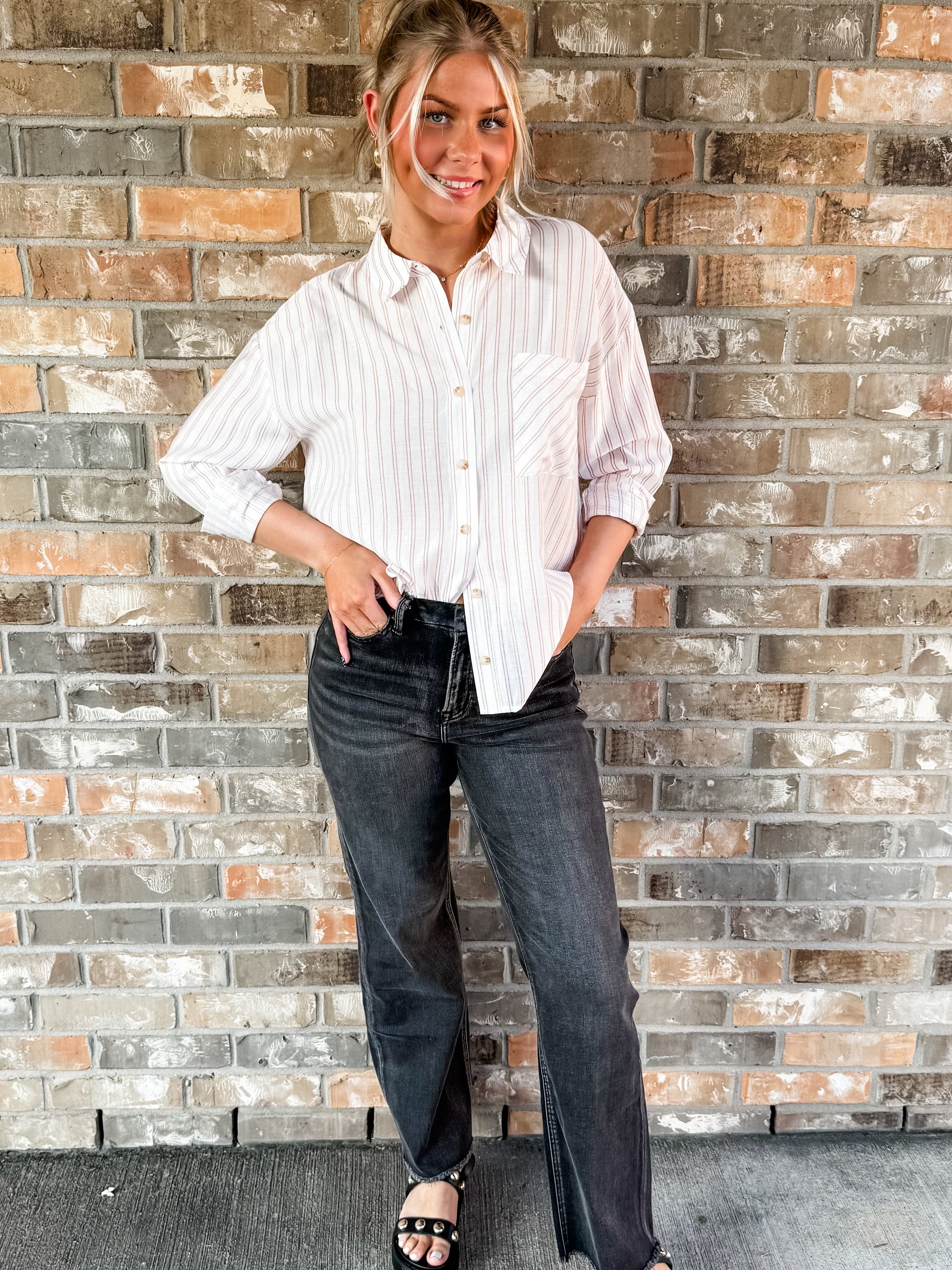 Add a splash of fun to your wardrobe with this Double Line Stripe Long Sleeve shirt. Featuring delicate pink stripes on a crisp white background, its button-down collar keeps things classic while the slim fit adds a modern twist. Perfect for those days when you want to look sharp but keep it light and playful.