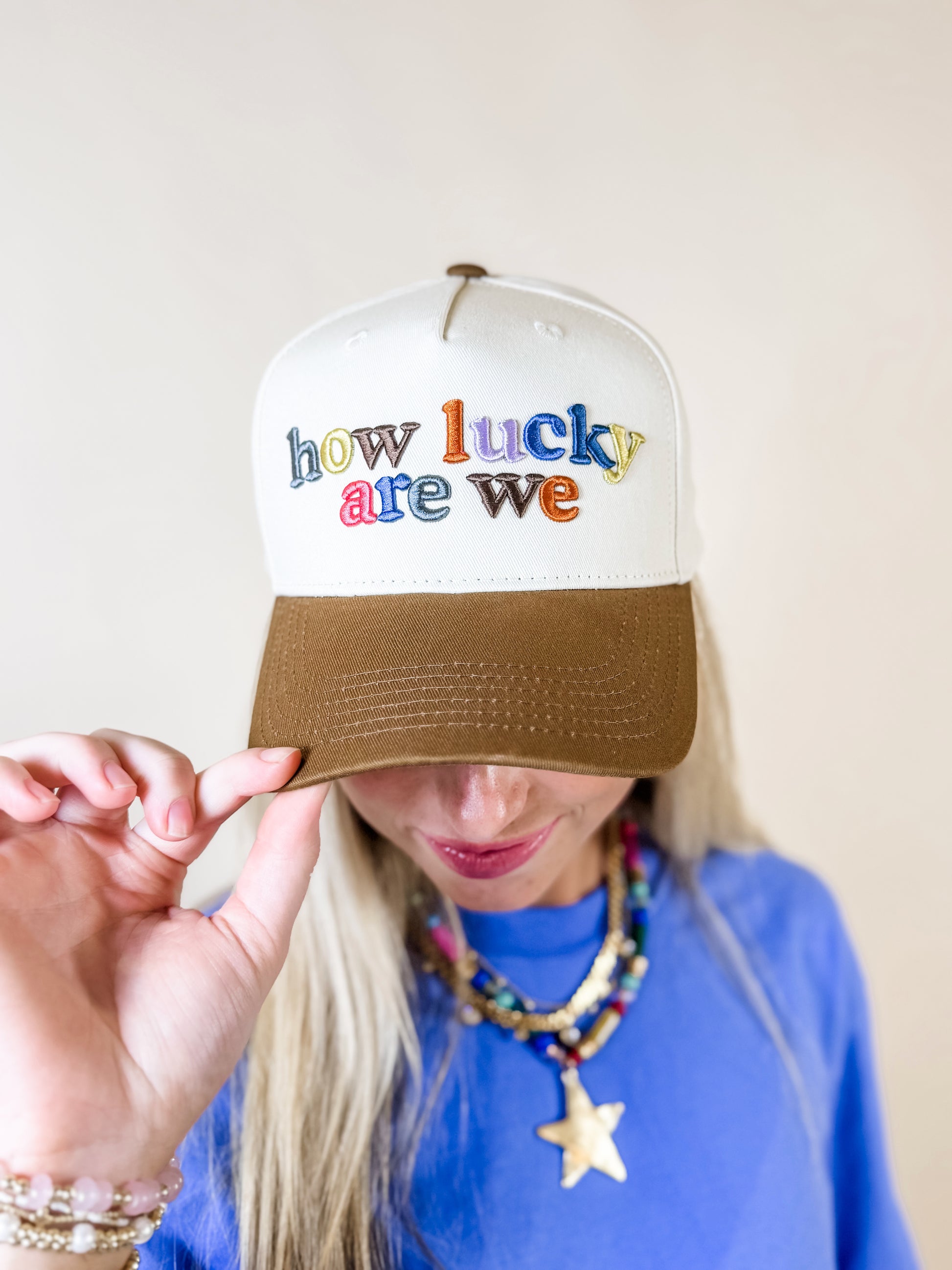 Add a splash of fun to your outfit with the How Lucky Are We Trucker Hat. This colorful trucker hat combines vibrant hues with a classic mesh back for breathability and comfort. Perfect for sunny days and casual adventures, it’s a playful way to keep cool while showing off your lucky style.
