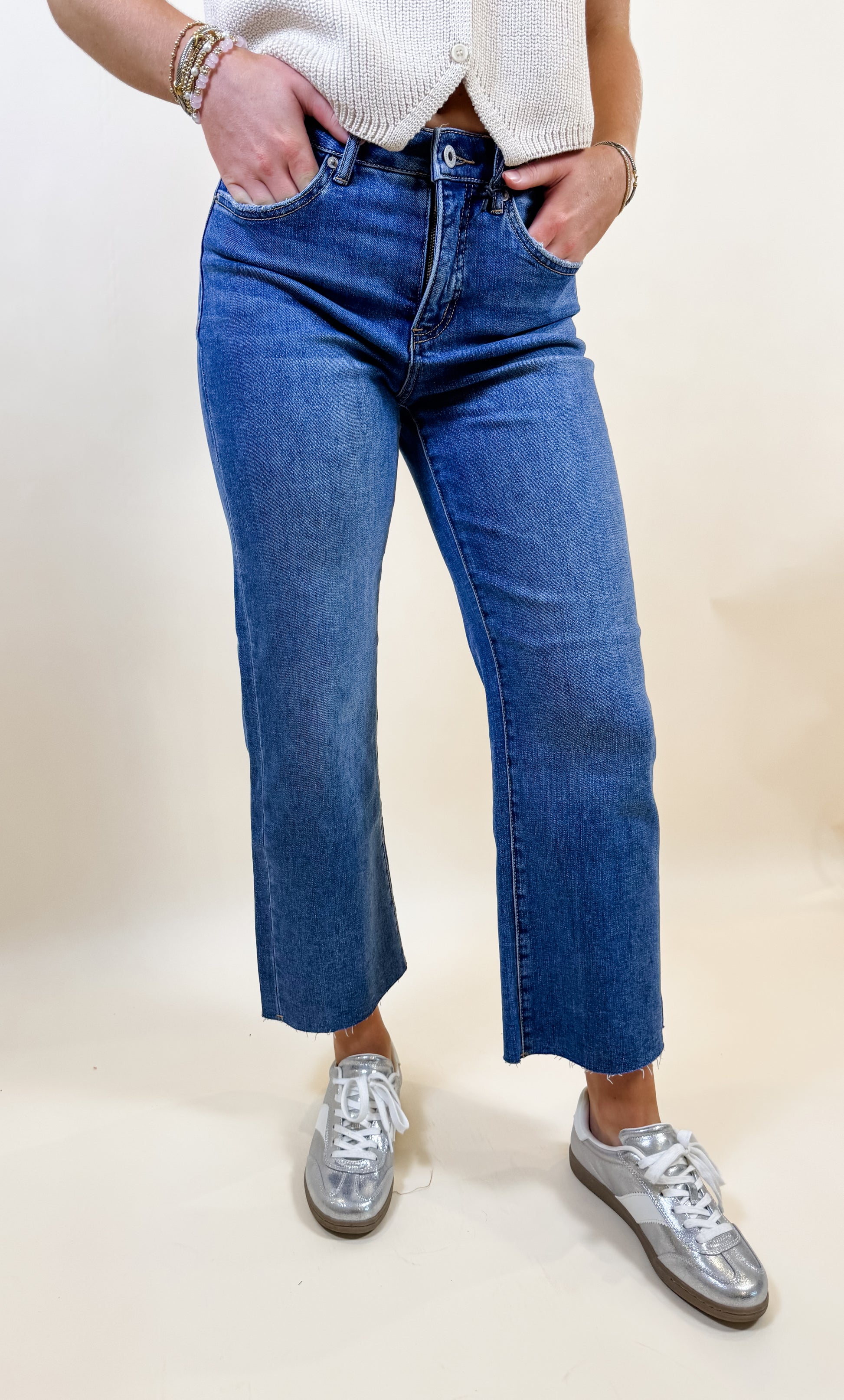 Add a splash of fun to your outfit with the Mica Medium Wash Denim jeans. These wide-leg jeans feature a smooth, medium blue wash with no distressing, giving you a fresh and polished look. Their roomy fit lets you move freely while keeping things effortlessly stylish and playful.