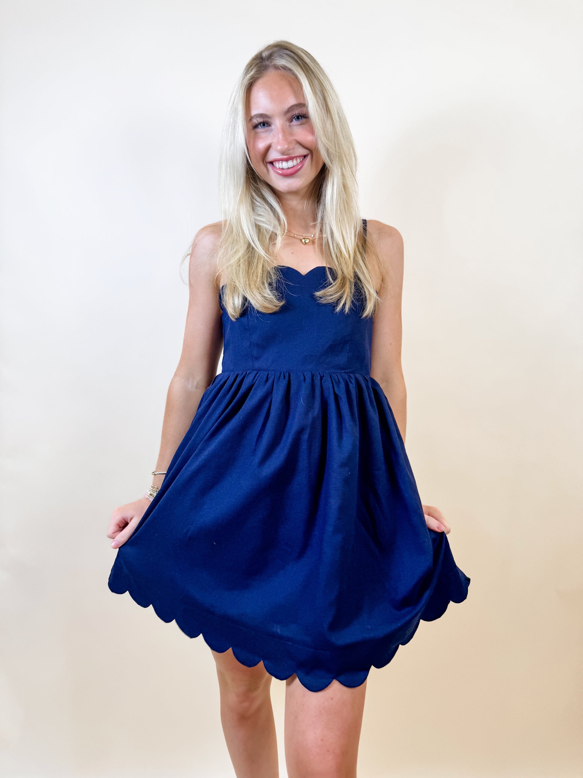 Navy Nancy Scalloped Dress